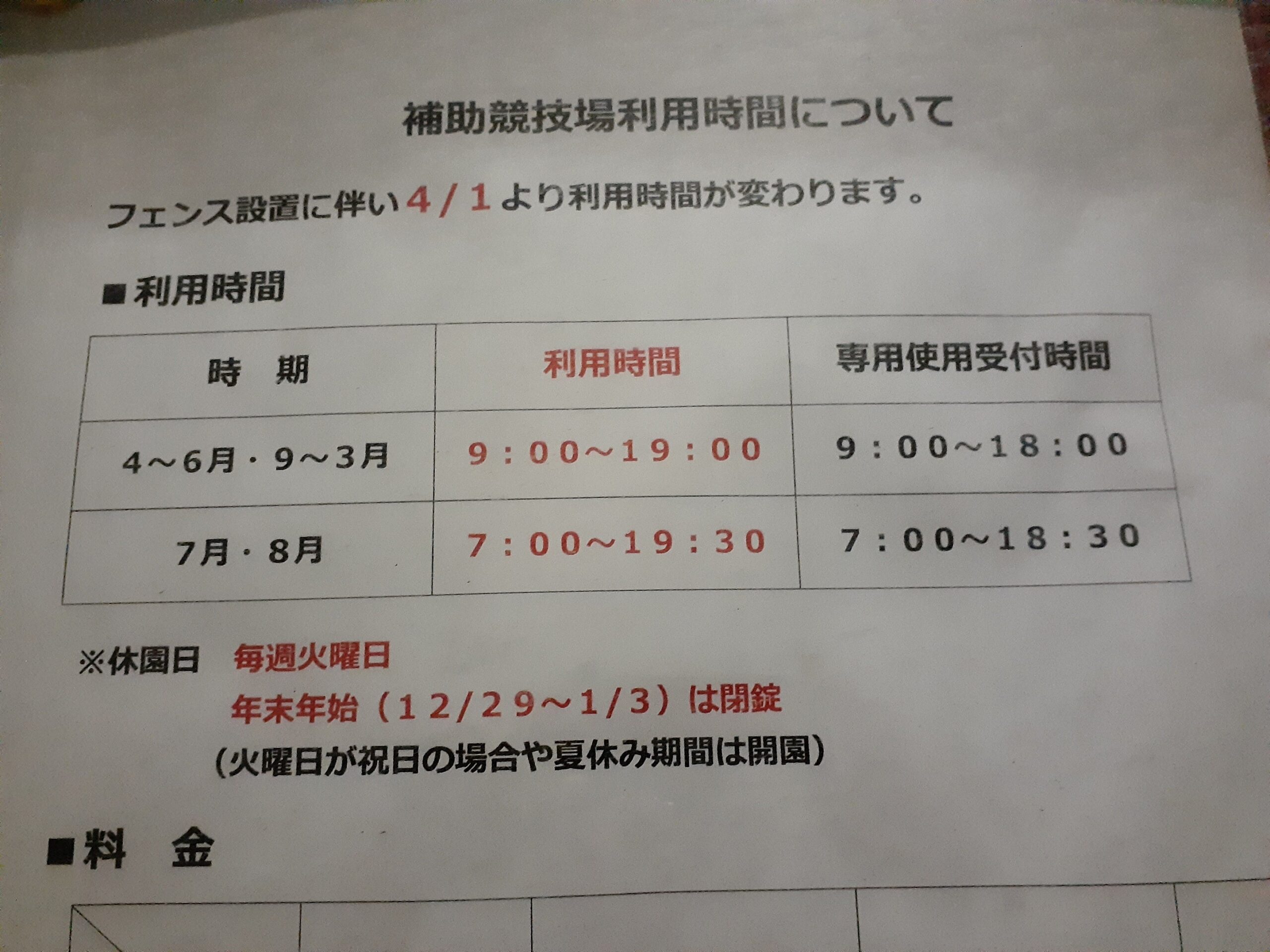 *4月から補助競技場が19時までの使用になります。
