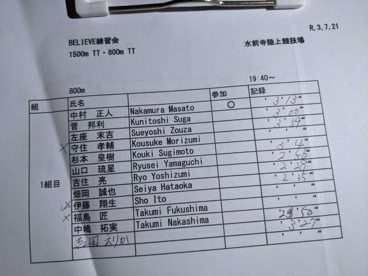 ❇️7/21(水)練習会 水前寺陸上競技場 1500TT,800TT | Running Club BELIEVE