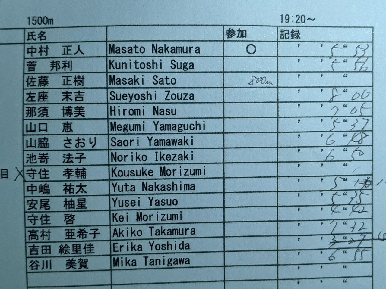 男女1500m
