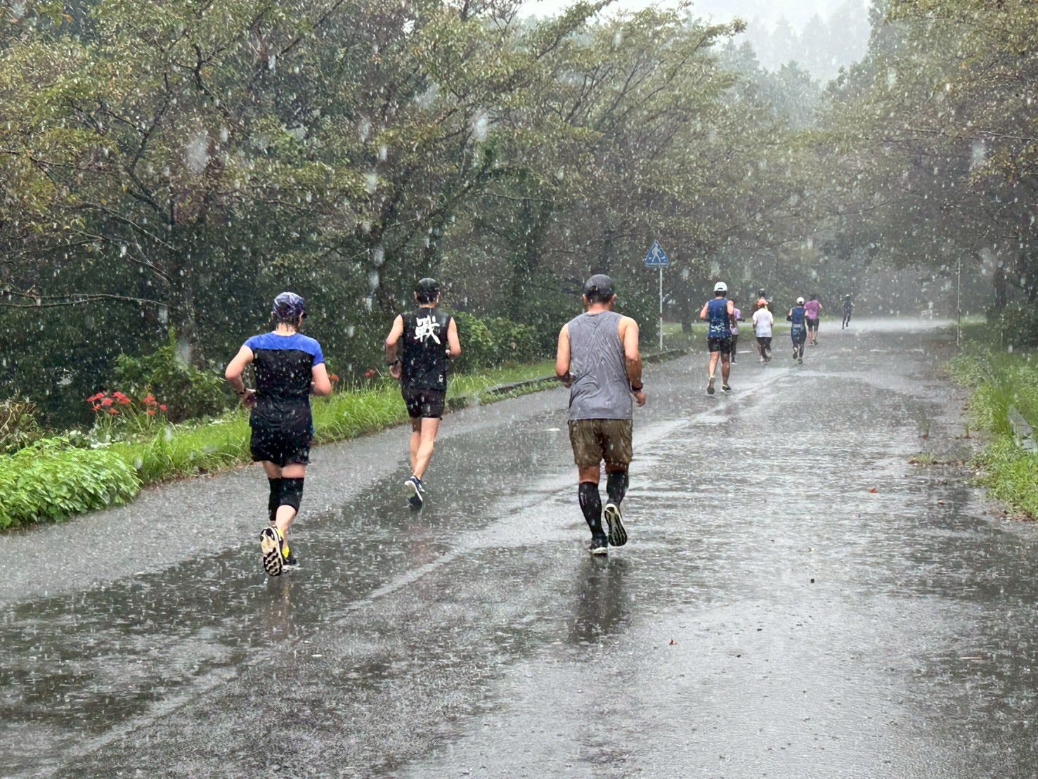 雨と雷 5キロ往復したところで、雷雨となったので途中で中止した。