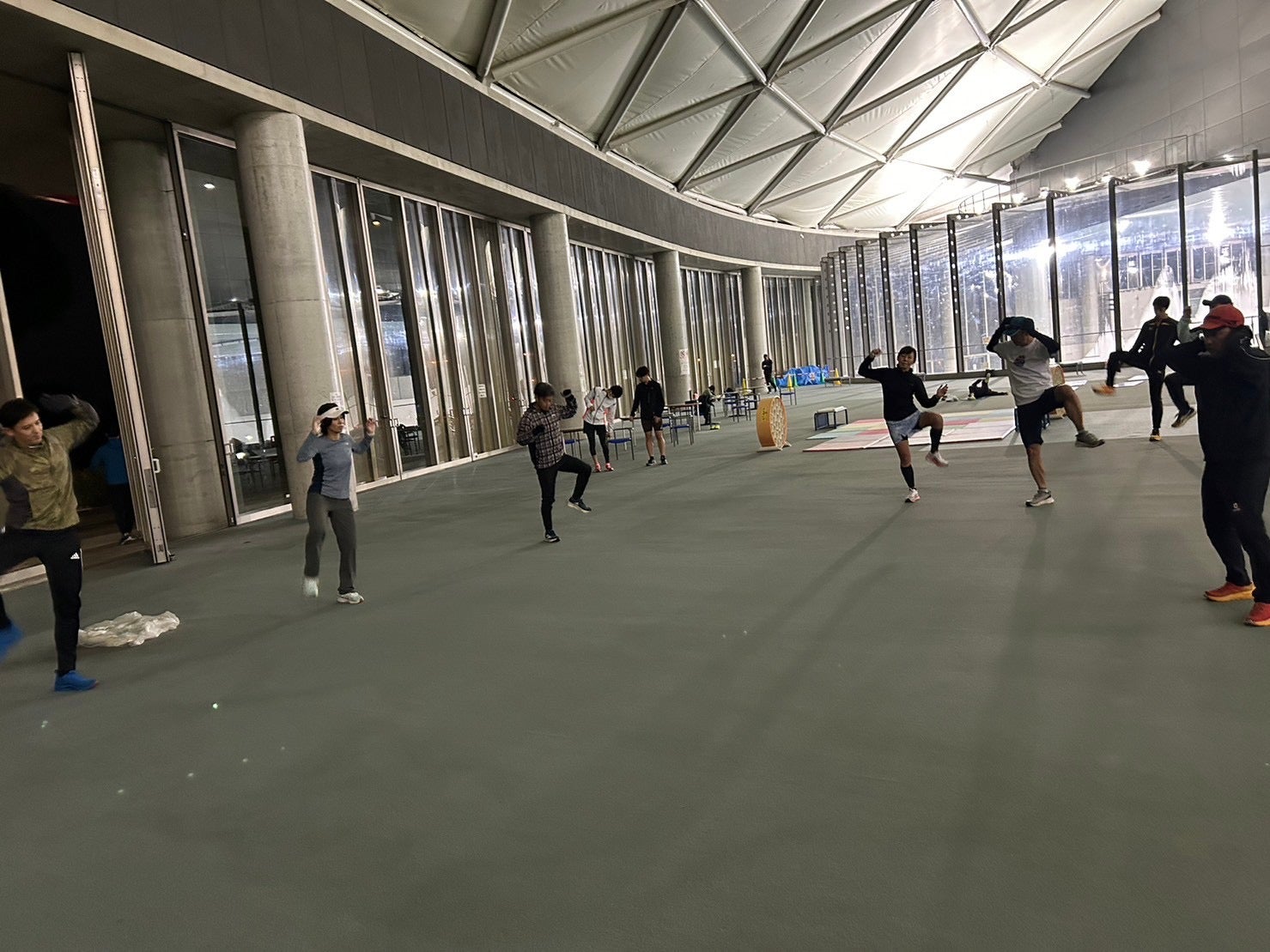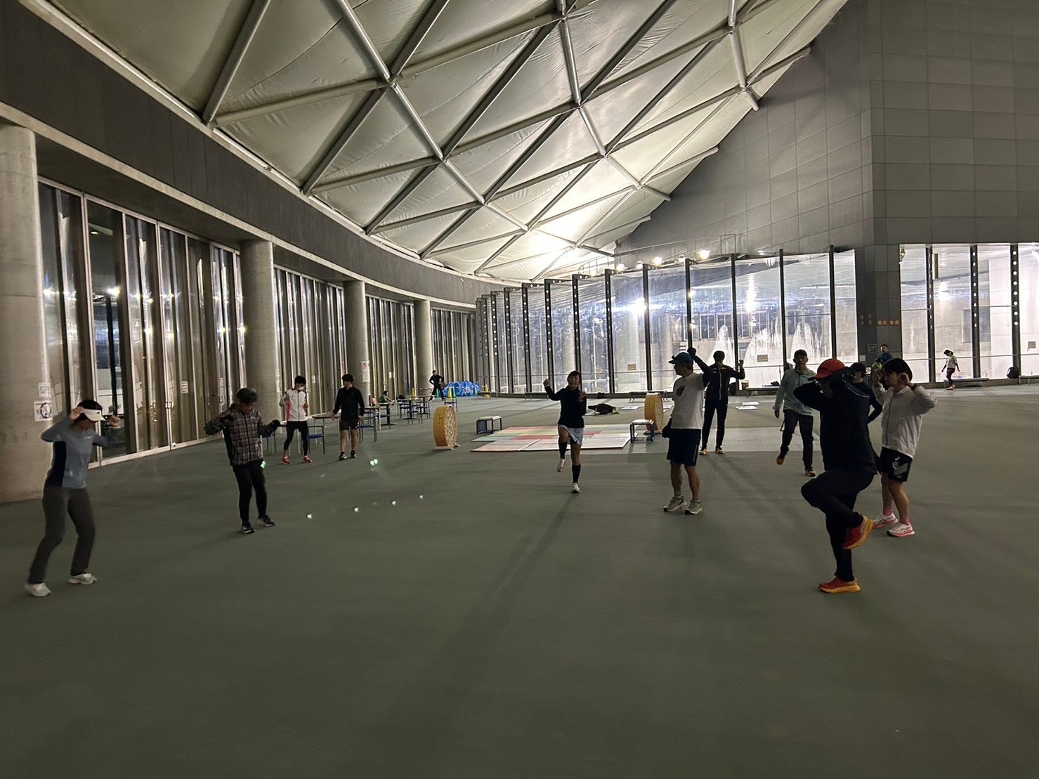 パークドーム内でウオーミングアップ