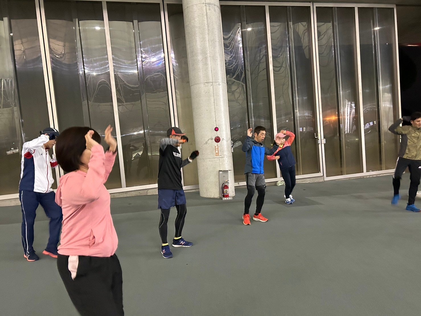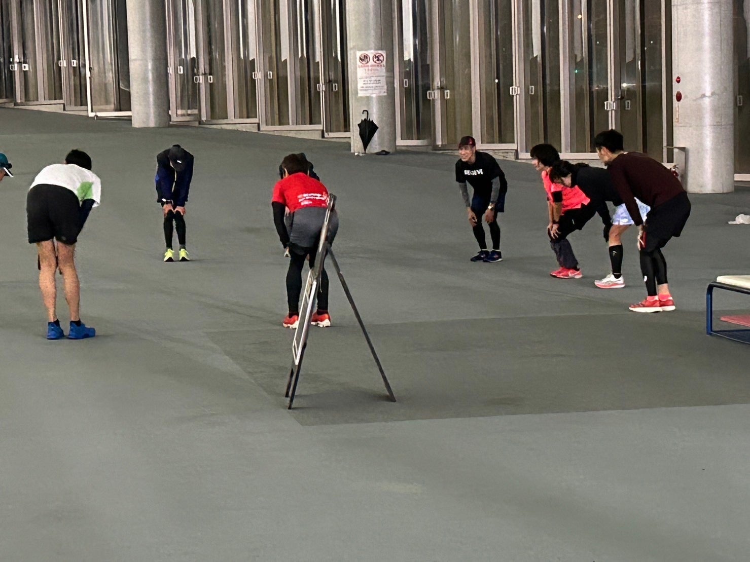 集合時間頃には、雨も止みえがスタ外周2キロコースに移動して