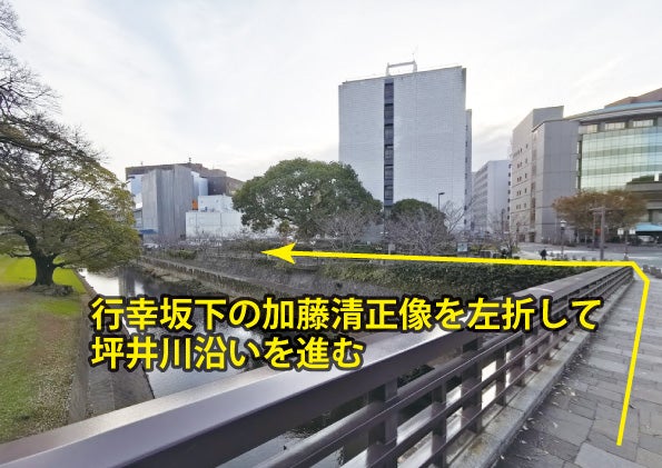 ㉒先程通ったら川沿いを戻って藤崎宮交差点へ